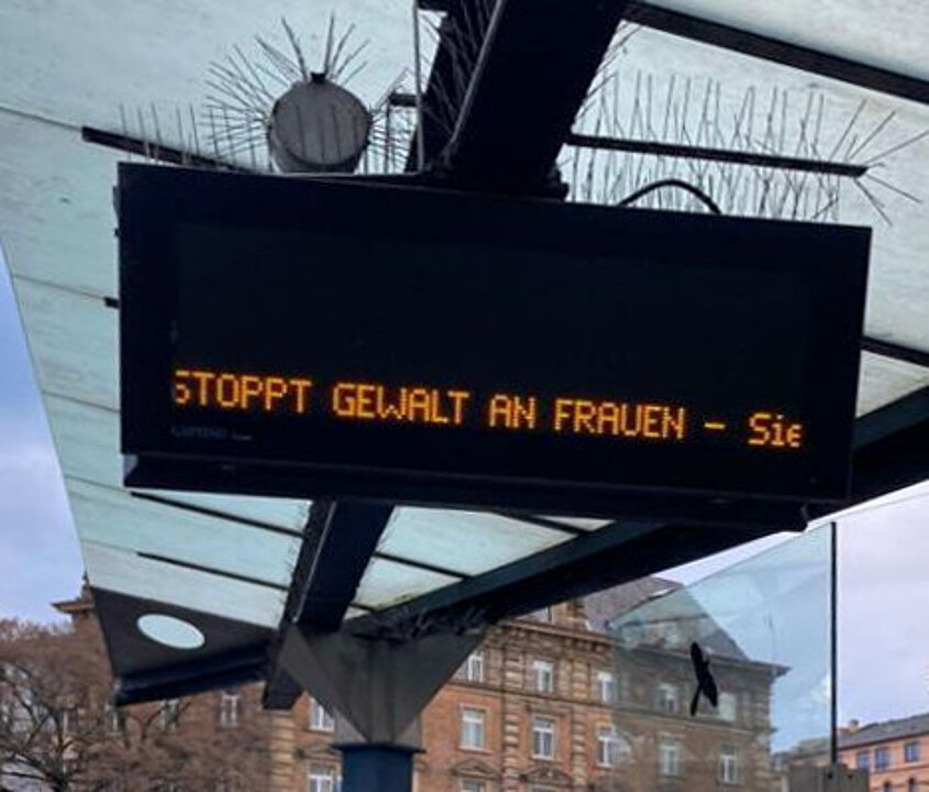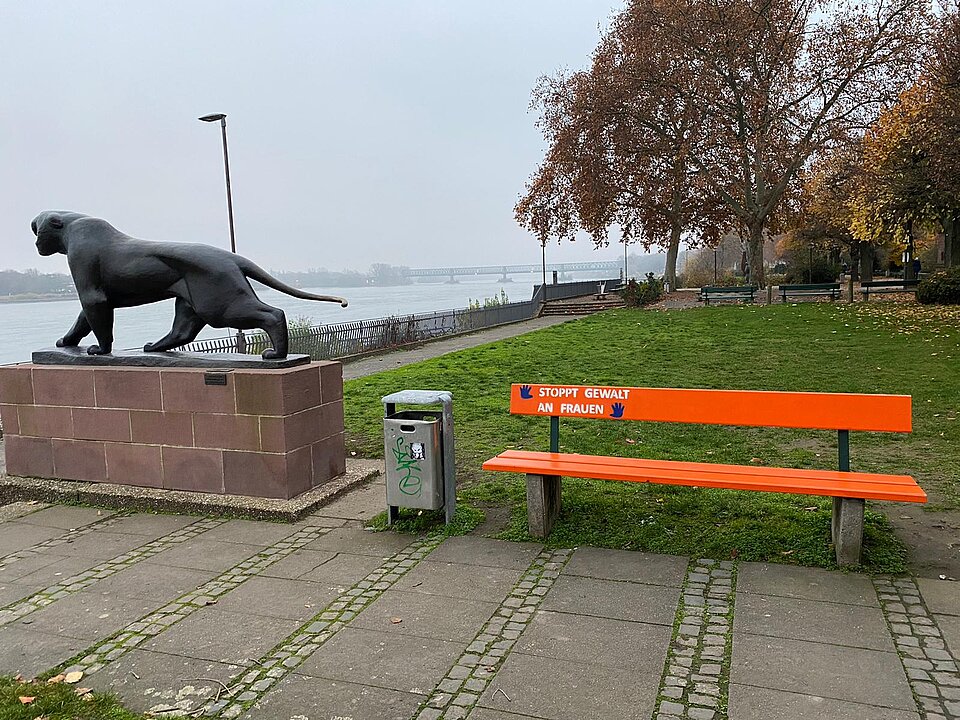 Auf Initiative der Mainzer Frauenclubs stellt das Grünamt der Stadt Mainz ganzjährig orangefarbene Bänke mit Notrufnummern an zentralen Plätzen auf: am Fischtorplatz, am Stresemannufer, am Gartenfeldplatz und – neu in diesem Jahr – am Schillerplatz.