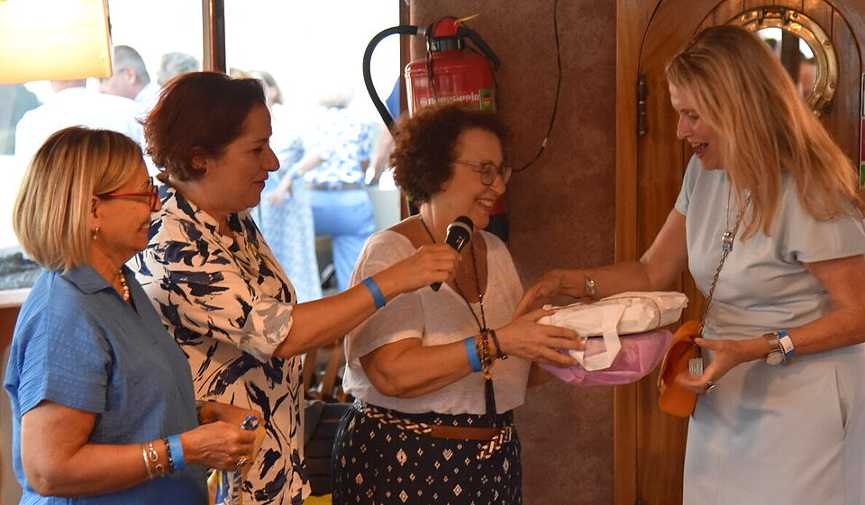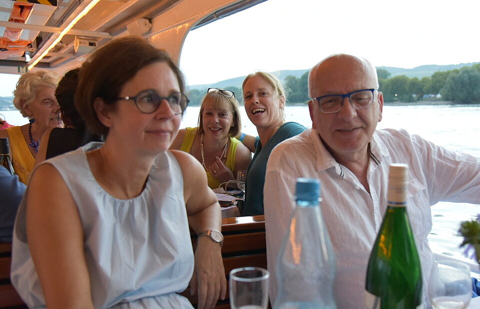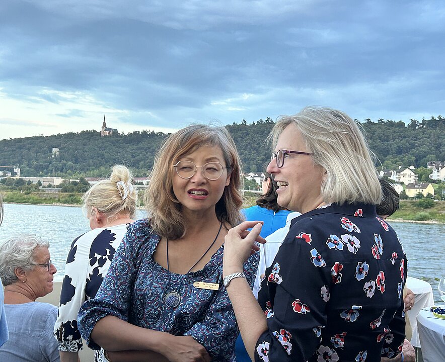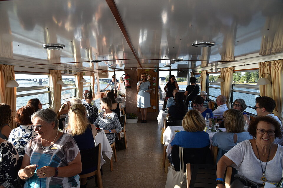 Beim Sektempfang in der Kakadubar empfingen wir vielen Gästen aus nah und fern. Es gratulierten die SI STAR Schirmherrin Malu Dreyer, der Oberbürgermeister Nino Haase, die Ministerin für Familien, Frauen, Kultur & Integration Katharina Binz, der Intendant des Staatstheaters Markus Müller, die Journalistin Petra Gerster, die Geschäftsführerin der Internationalen Gutenberggesellschaft Carina Weißmann und die Geschäftsführerin von UN Women Germany Bettina Metz. Wir begrüßten Clubschwestern aus benachbarten Clubs wie SI Club-Ingelheim, SI Club-Frankfurt-Vision, Clubs aus ganz Deutschland und unseres Freundschaftlinks SI Club-Izmir. Im Anschluss wurde bei einer schönen Rheinfahrt weitergefeiert.