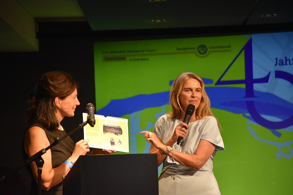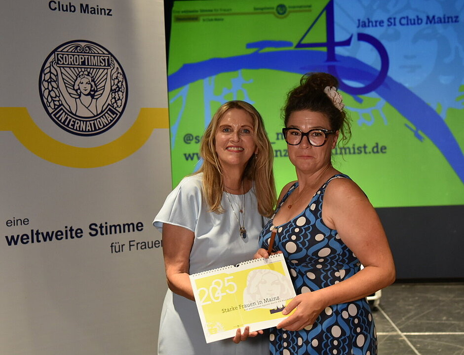 Bei unserem 40-Jahre-Empfang gab es eine Überraschung: Unsere Präsidentin Susanne Becker und unsere beiden Vizepräsidentinnen Anke Sprenger und Iris Leonhardt haben den nagelneuen Kalender „Starke Frauen in Mainz“ 2025 vorgestellt. Den ersten haben wir Malu Dreyer überreicht, der ersten Ministerpräsidentin von RLP, die einen prominenter Platz im Kalender hat - unser großer Dank für ihre Schirmherrschaft unseres Medienprojekts, des SI STAR Filmpreises! Begleitet wird sie von vielen historischen Frauen wie Maria Einsmann, Kathinka Zitz, Gerti Salomon und Anna Seghers sowie die aktuellen tollen Mainzerinnen Anja Gockel, Margit Sponheimer und Prof. Özlem Türeci. Der Kalender gehört zur beliebten „Frauen Führung“ unserer Clubschwester und Kunsthistorikerin Anke Sprenger, die wir 2020 bei Soroptimist Mainz entwickelt haben. Ihr könnt ihn bei Best of Mainz am Kirschgarten bekommen!